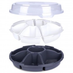 - Universaalne – selles saate serveerida igasuguseid eelroogasid ja suupisteid. See on kasulik ka väikeste suupistete serveerimiseks, nt. pähklid ja kuivatatud puuviljad. See sobib suurepäraselt pidudele, sest suupisted ei segune roas, vaid on korralikult eraldatud. Saame seda kasutada ka dippide serveerimiseks, muretsemata kastmete kombineerimise pärast.