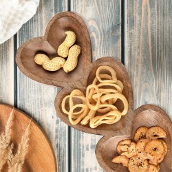 - Südamekujuline suupistetaldrik – moodne piklik serveerimistaldrik mõõtmetega 40 x 16 x 3,5 cm. Sellel on kolm integreeritud südamekujulist süvendit, mis sobivad suurepäraselt oliivide, pähklite, dipikastmete ja muude väikeste suupistete elegantseks serveerimiseks. Iga südame mõõtmed on 16 x 16 cm.