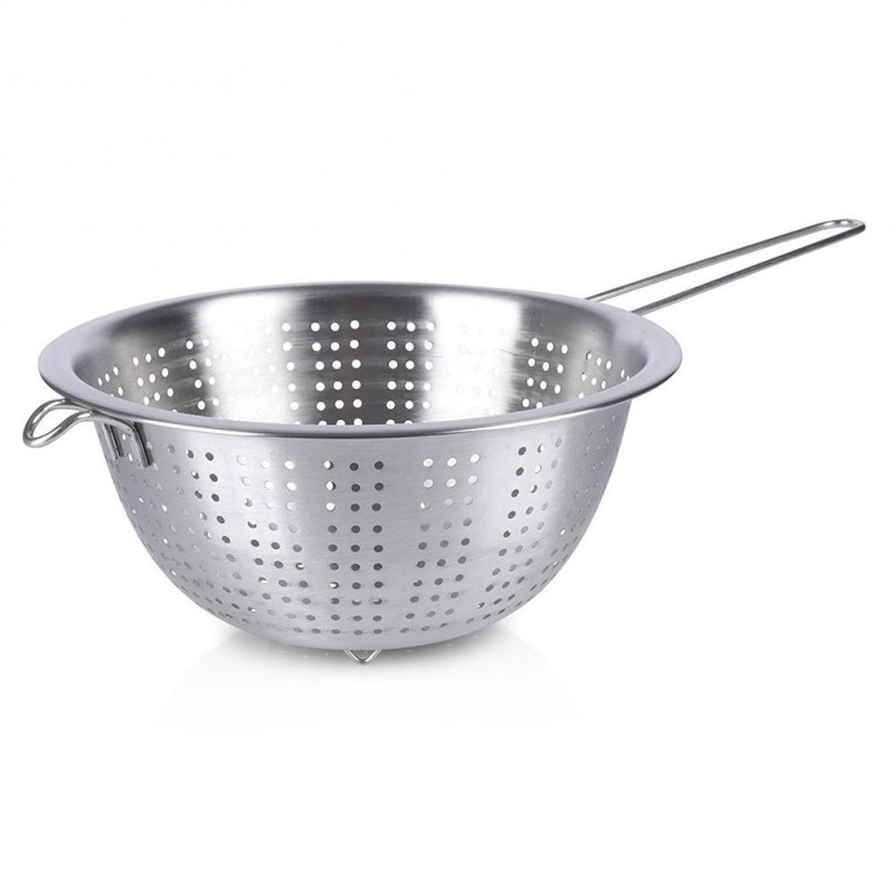 Universaalne roostevabast terasest kurn kausi kujul. Mugav kasutada tänu käepidemetele ja stabiilsele alusele. Kasulik igas köögis. Anum sobib juur- ja puuviljade pesemiseks, samuti riisi, pasta kurnamiseks. Soliidselt tehtud. Lihtne puhastada ja mugav kasutada. Kurn võib olla stabiilselt poti või kausi peal. Toodetud vastavalt Euroopa standarditele.