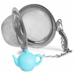 - ROOSTEVABA TERAS – ümmarguse kujuga teetõmmis koos teekannukujulise riidepuuga. Valmistatud kõrgeima kvaliteediga roostevabast terasest hõbedase värviga. Riidepuu on valmistatud sinisest plastikust. Infuser on mõõtmetega 5 x 5 cm.