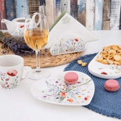 - Valmistatud portselanist – valmistatud kõrgeima kvaliteediga valgest portselanist pilkupüüdva metsalilledekooriga. Õige kasutamise korral kestab see palju aastaid.