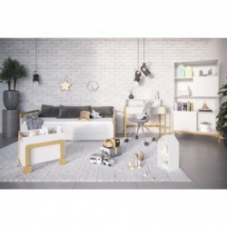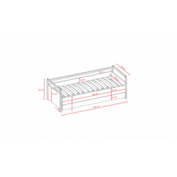 Voodi suureks eeliseks on mahukas sisseehitatud sahtel, mis pakub võimalust kasutada mööblitükki igapäevaste esemete panipaigana. Turvalisuse suurendamiseks kasutasime lakitud tammepuust piirdeid, mis ümbritsevad mööblit ja pakuvad kaitset. Mööbli põhimaterjaliks on sertifitseeritud 18mm valge pinnaga lamineeritud mööbliplaat.
