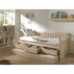Lihtsa disainiga voodi on funktsionaalse ja kompaktne. Voodi on valmistatud männipuidust. Voodilipid on kaasas, madrats ei ole- sobib 90x200 cm. Maksimaalne kandevõime on kuni 75 kg. Kolmest piiratud voodi kaitseb kukkumiste eest, soovi korral keerates voodi vastu seina, on magamine turvalisem. Päeval sobib suurepäraselt ka diivaniks koos patjadega. Kolm sahtlit pakuvad lisaruumi.