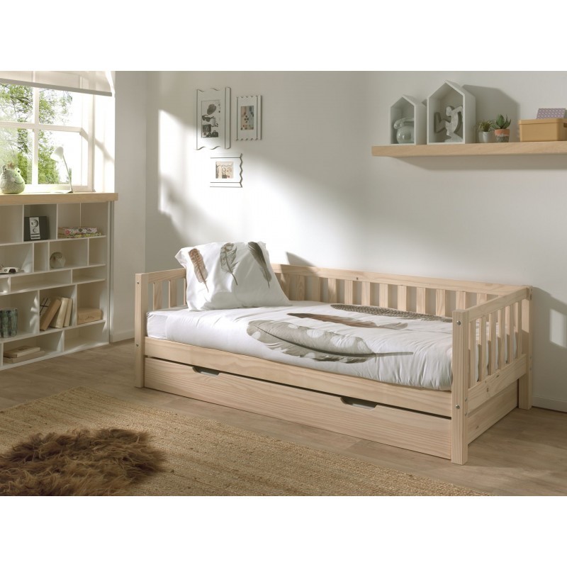 Piimjas männipuidust kajutivoodi FRITZ (90x200) on valmistatud täismännist. Minimalistlik ja stiilne disain sobib igasse interjööri. Sellel voodil on kolmel küljel piirdeaed, mis võib olla kukkumiskaitseks, kuid sobib ideaalselt ka diivaniks koos patjadega. Kaasnev voodisahtel on samuti valmistatud täismännist. Rattad on varustatud nii, et sahtlit saab hõlpsalt sisse ja välja liigutada. Rullvoodit saab kasutada lisamagamiskohana külalistele või panipaigana.