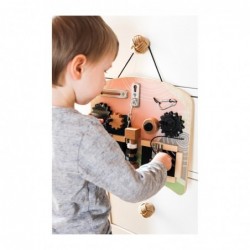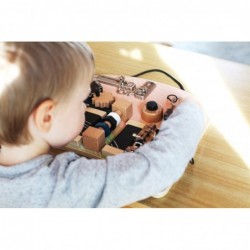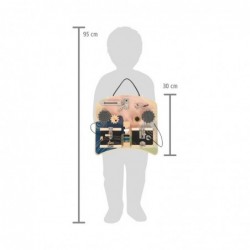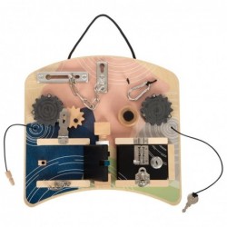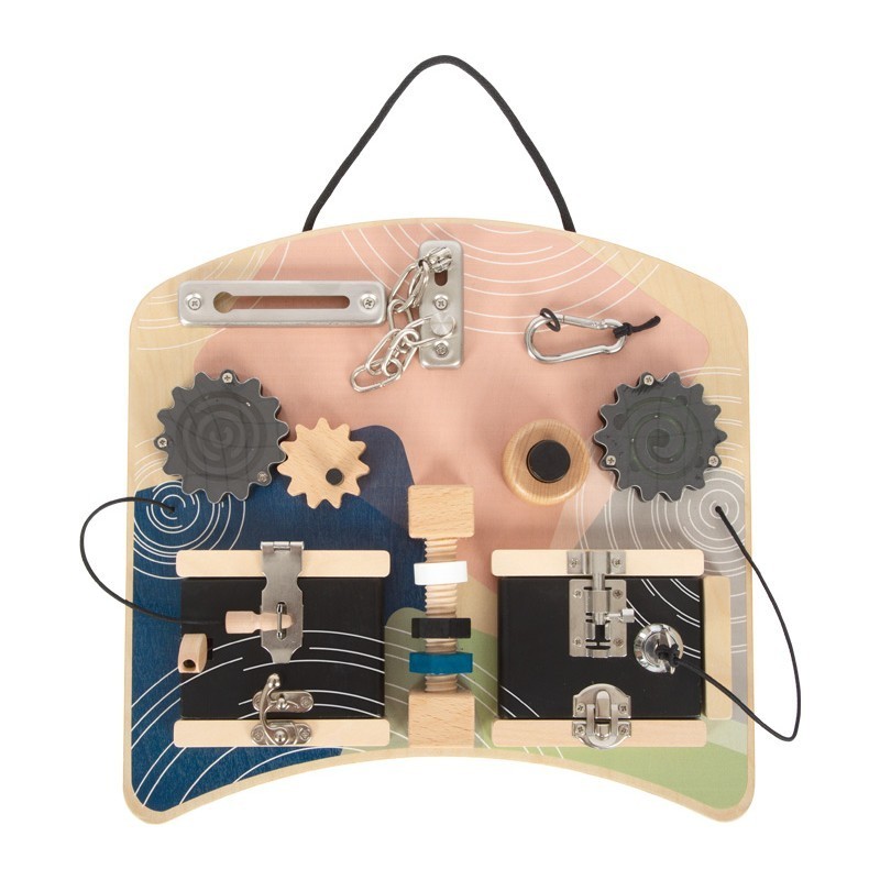 See puidust õppetahvel pakub 14 erinevat tüüpi motoorset tegevust koos erinevate pandlate ja nööridega. Moodsate, trendikate värvide ja rohke nähtava puitmaterjaliga mängulaud pakub laia valikut tegevusi peenmotoorika arendamiseks. Alates aasadega lülitusnuppudest ja vööpandlast kuni konksu ja aasaga detailideni ja trakseklambriteni ning tõmbluku ja klõpsatusega pandlaga – see tegevuslaud pakub palju ühendamisrõõmu, mida lapsed tunnevad igapäevaelust ja saavad harjutada lõbusal viisil. Kaasas kingapaelad, et harjutada nöörimist ja sidumist.