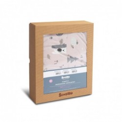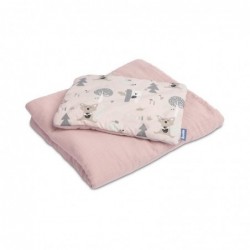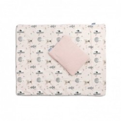 Armsa disainiga teki ja padja komplekt. Kangas on üheltpoolt kõrgekvaliteedilisest musliinist ja teiselt poolt trükitud puuvillast, seega on lapse naha suhtes õrn ja tagab turvalise ja mugava magamiskeskkonna. Komplekti õhku läbilaskev musliinikangas tagab piisava õhuringluse ning naturaalsete ja õhuliste kangaste kombinatsioon sobib suurepäraselt võrevoodi või hälli jaoks. See on täidetud allergiavastase silikoonfliisiga. Komplekt on pakendatud karpi, mis sobib suurepäraselt kingituseks. Mõõdud: - Padi: 27x37 cm (+/- 2 cm)- Tekk: 75x95 cm (+/- 2 cm) Materjalide koostis: - Sisekiht: 100% puuvill- Väline kiht: 100% puuvill- Täidis: 100% polüester Hooldusjuhend: - Pesemine käsitsi max 30⁰ C juures. - Ärge pleegitage. - Ärge keemiliselt puhastage. - Triikige maksimaalselt temperatuuril 110⁰ C. Pakendi mõõdud: 37,5x31x10,5 cm
