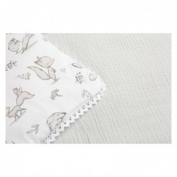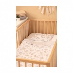 Armsa rebase disainiga teki ja padja komplekt. Kangas on üheltpoolt kõrgekvaliteedilisest musliinist ja teiselt poolt trükitud puuvillast, seega on lapse naha suhtes õrn ja tagab turvalise ja mugava magamiskeskkonna. Pehme padi on kaunistatud pitsist äärega. Komplekti õhku läbilaskev musliinikangas tagab piisava õhuringluse. Kogu komplekti mõõtmed on kohandatud nii, et see sobiks ideaalselt beebivoodisse või hälli ja nii on laps kogu öö jooksul kaetud.