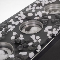 Komplektis valged ja mustad kivid.